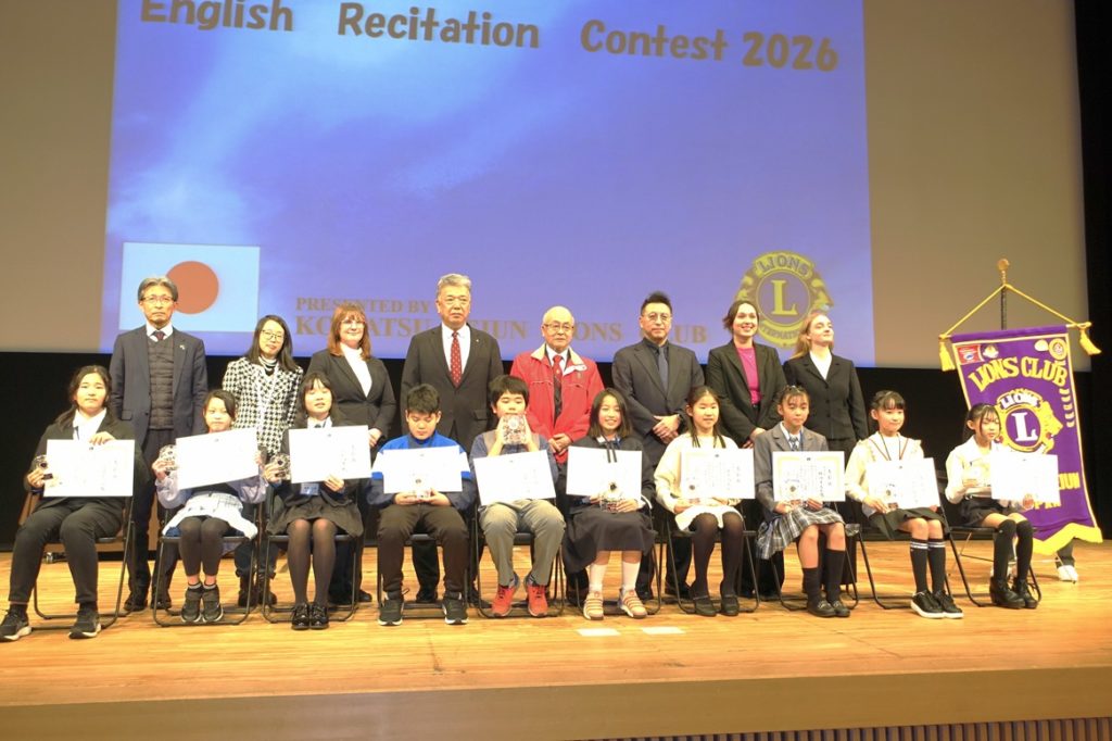 English Recitation Contest 2026が開催されました 2026年2月12日 2026年2月12日 / 活動報告 受賞者の皆様 当日のコンテストの模様はテレビ小松 2月19日~26日 「まるごとこまつ」 3月5日~11日 「Komaワイド」にて放映されます。